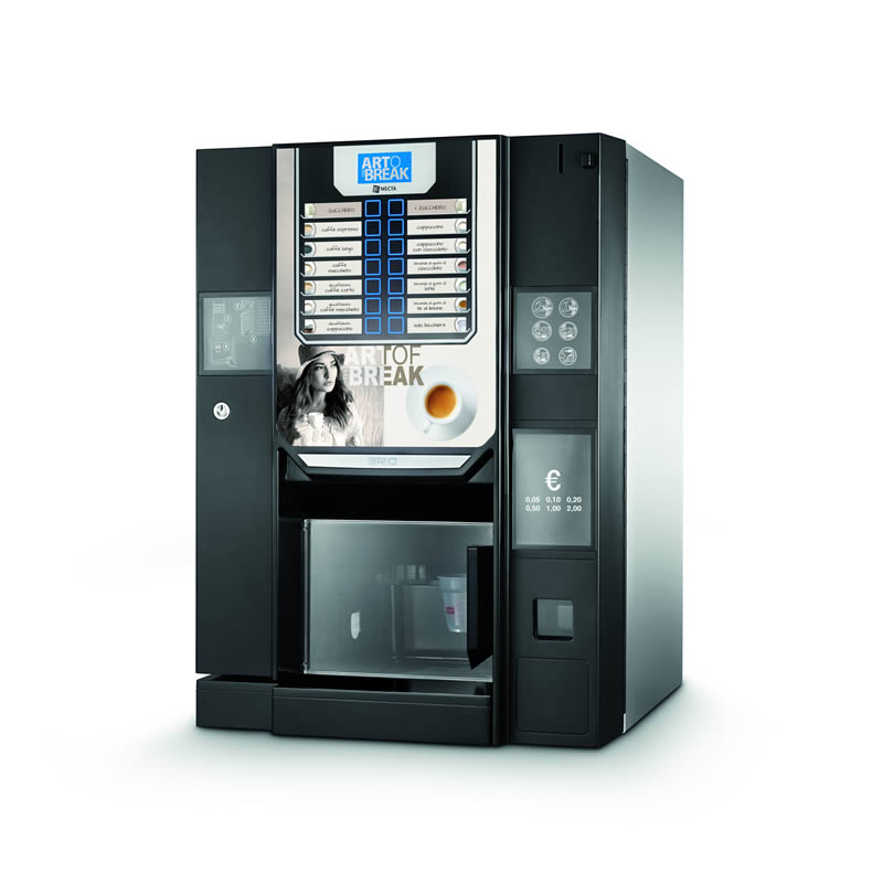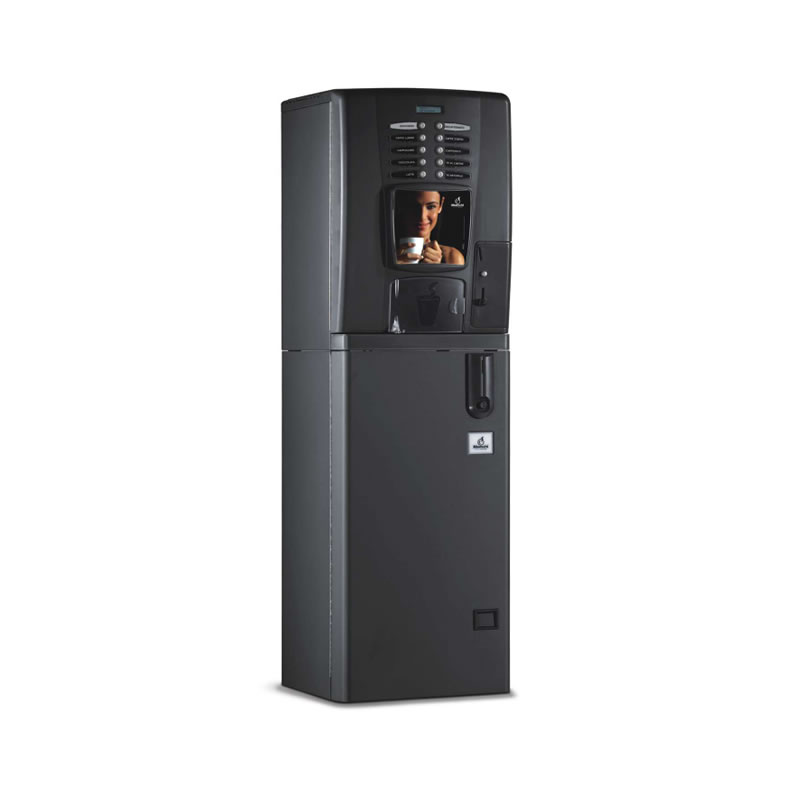Iris, distributore automatico tabletop 180 bicchieri. Disponibile sia nella versione caffè espresso che caffè solubile. Compatibile con tutti i più avanzati protocolli di comunicazione. Equipaggiata, nella versione espresso, con gruppo