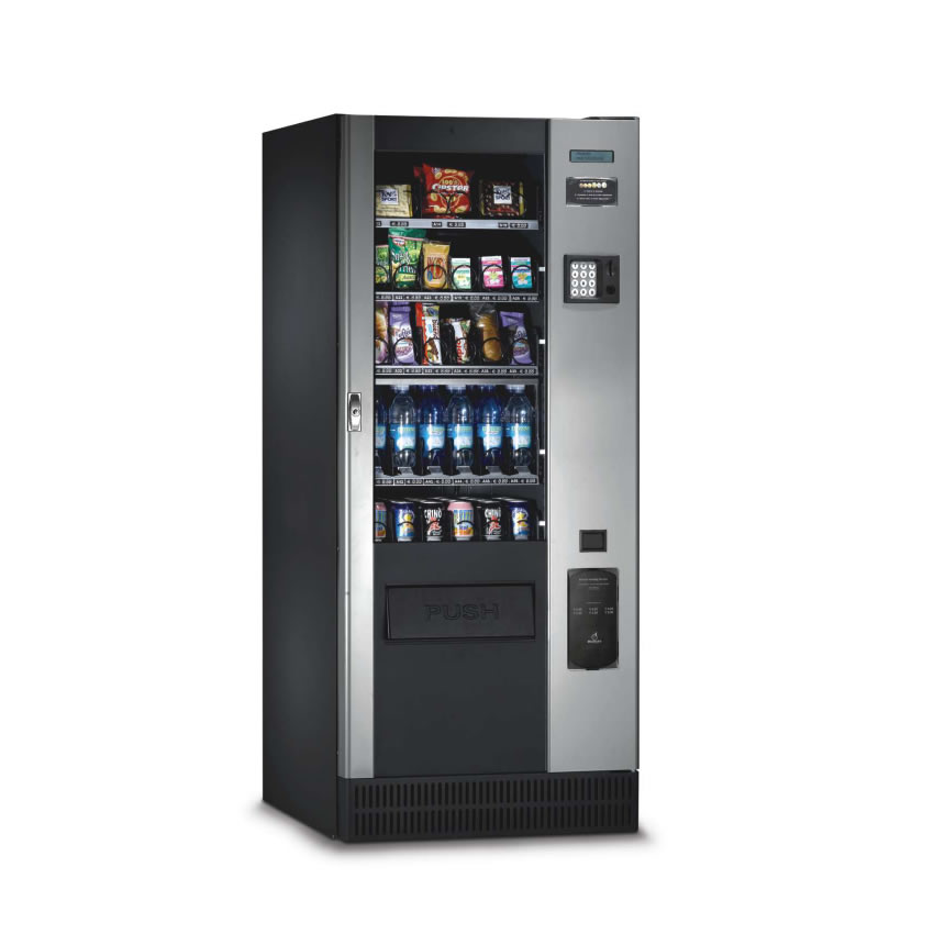 BVM 671, distributore automatico a spirali refrigerato per la vendita di snack, lattine e bottiglie personalizzabile nelle versioni Combinata e Snack Compatibile con tutti i più avanzati protocolli di comunicazione. Porta con fascione unico che