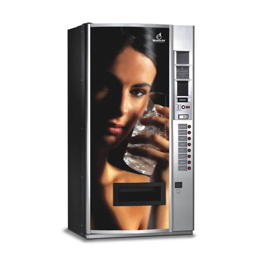 BVM 581, distributore automatico di bottiglie e lattine. Carrozzeria in lamiera pre-plastificata, struttura antivandalica. Porta coibentata e bombata con frontale illuminato Chiusura porta con doppio aggancio. Cella interna in materiale plastico