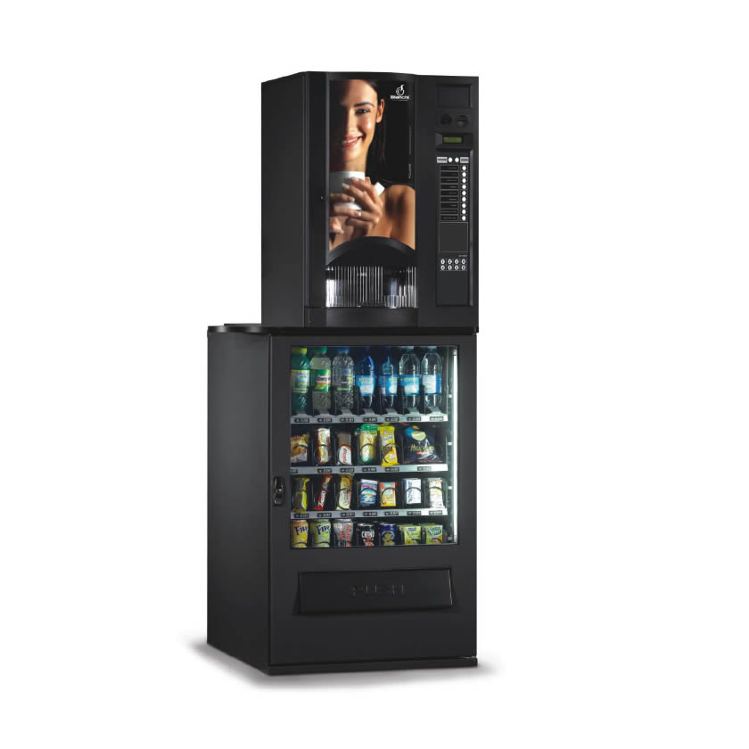Polaris, distributore automatico table top 270 bicchieri. Vega, distributore automatico a spirali refrigerato di dimensioni ridotte per la vendita di snack, bottiglie e lattine. Abbinate possono lavorare in master/slave con un unico sistema di
