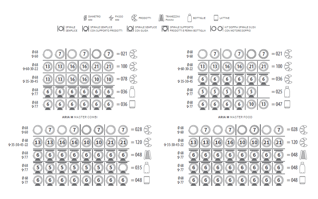 ARIA M, distributore automatico a spirali refirigerato 3° C per la vendita di snack, panini, prodotti freschi, lattine e bottiglie; disponibile in versione master o slave.